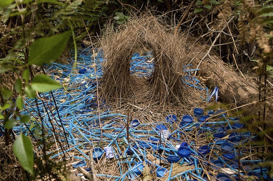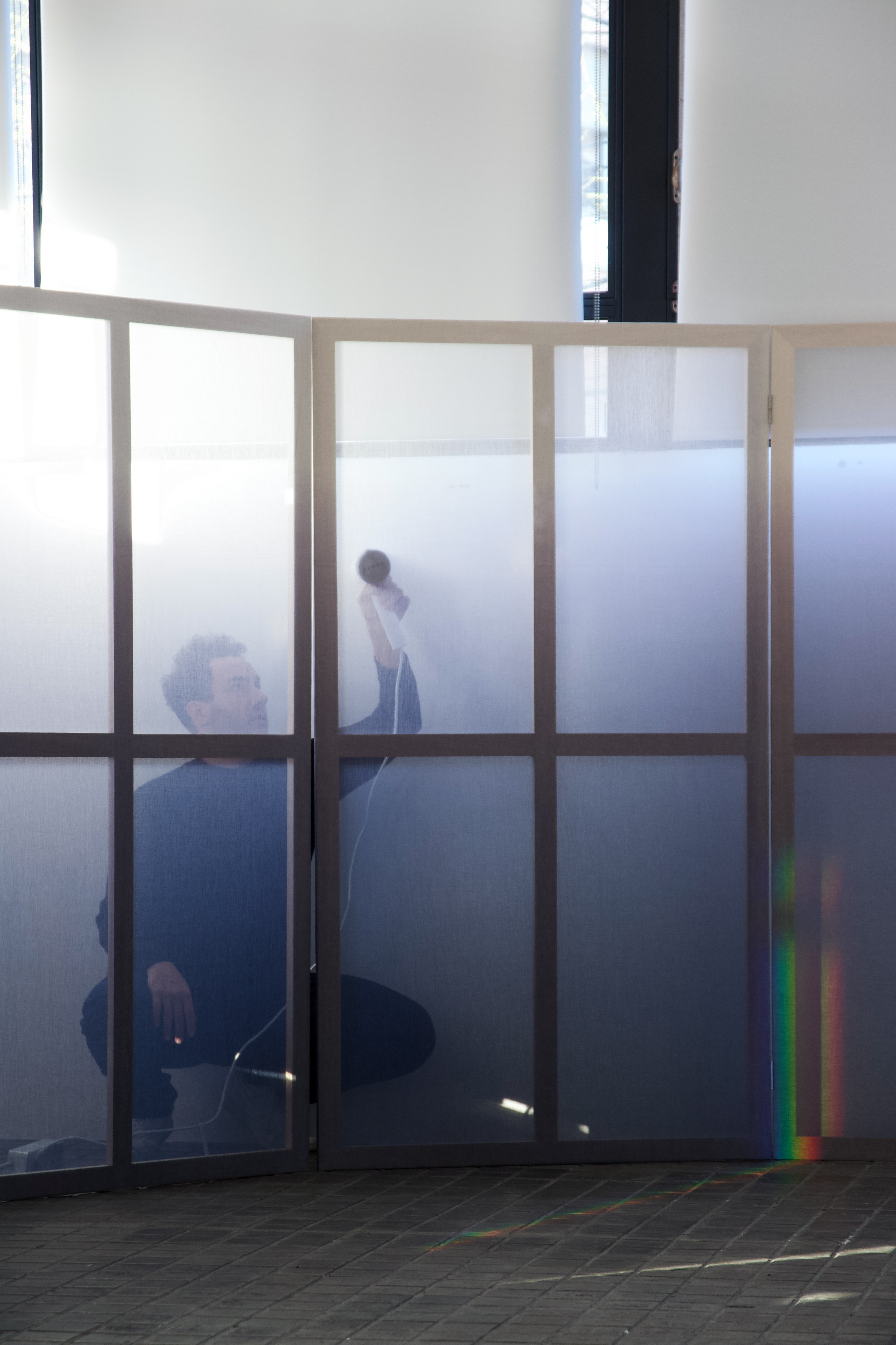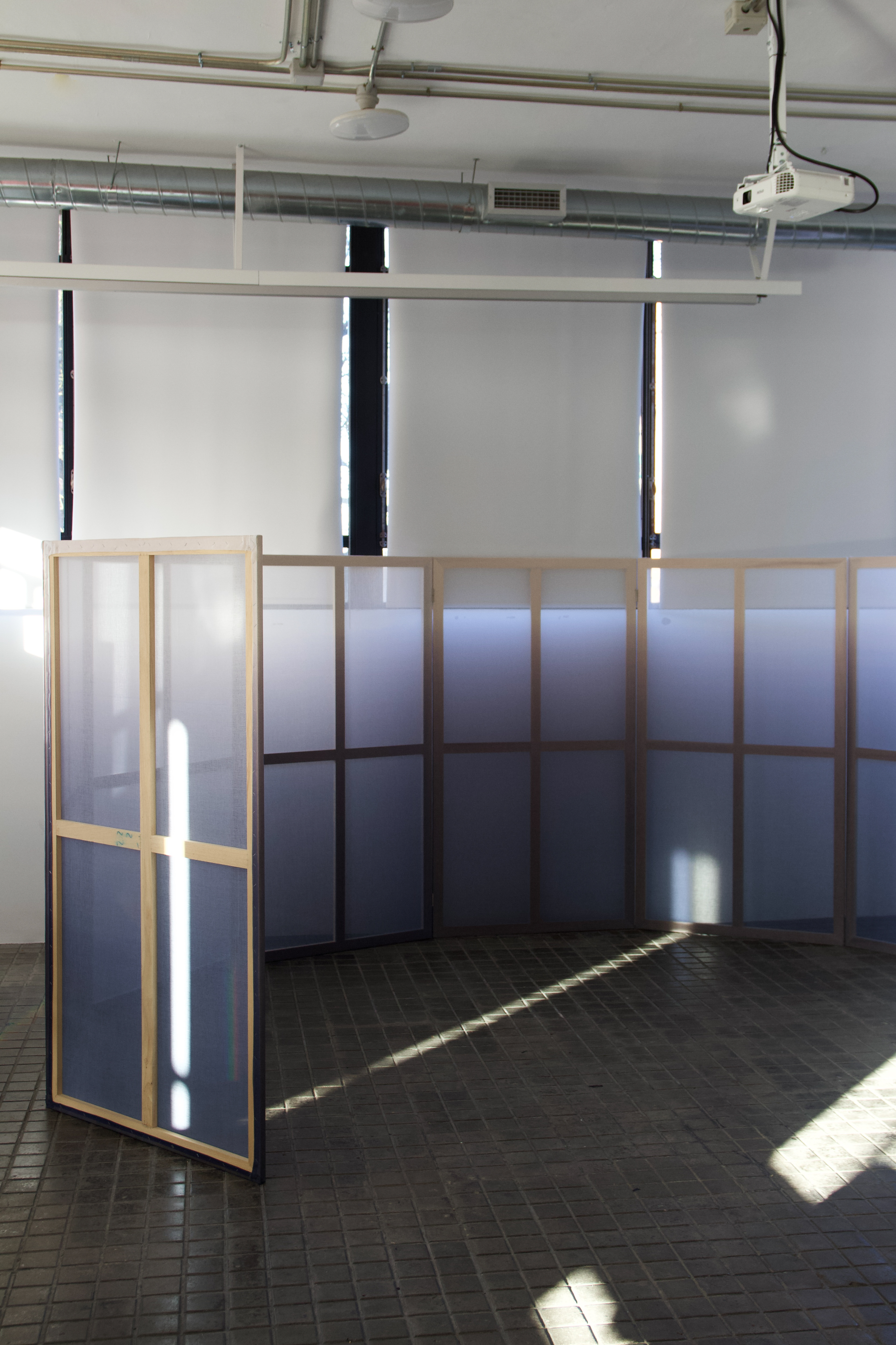 Ante los 3 muros, 3 trípticos. La intervención en madera y textil, hace propio al espacio anónimo con una nueva piel azul que se funde e integra gradualmente con la feria. Además, hace referencia al refugio del Tilonorinco, el pájaro coleccionista que tiene predilección por ese color y representa a 9915 en su logo. El conjunto se completa con piezas de mobiliario de carácter escultórico hechas artesanalmente en fibras naturales.