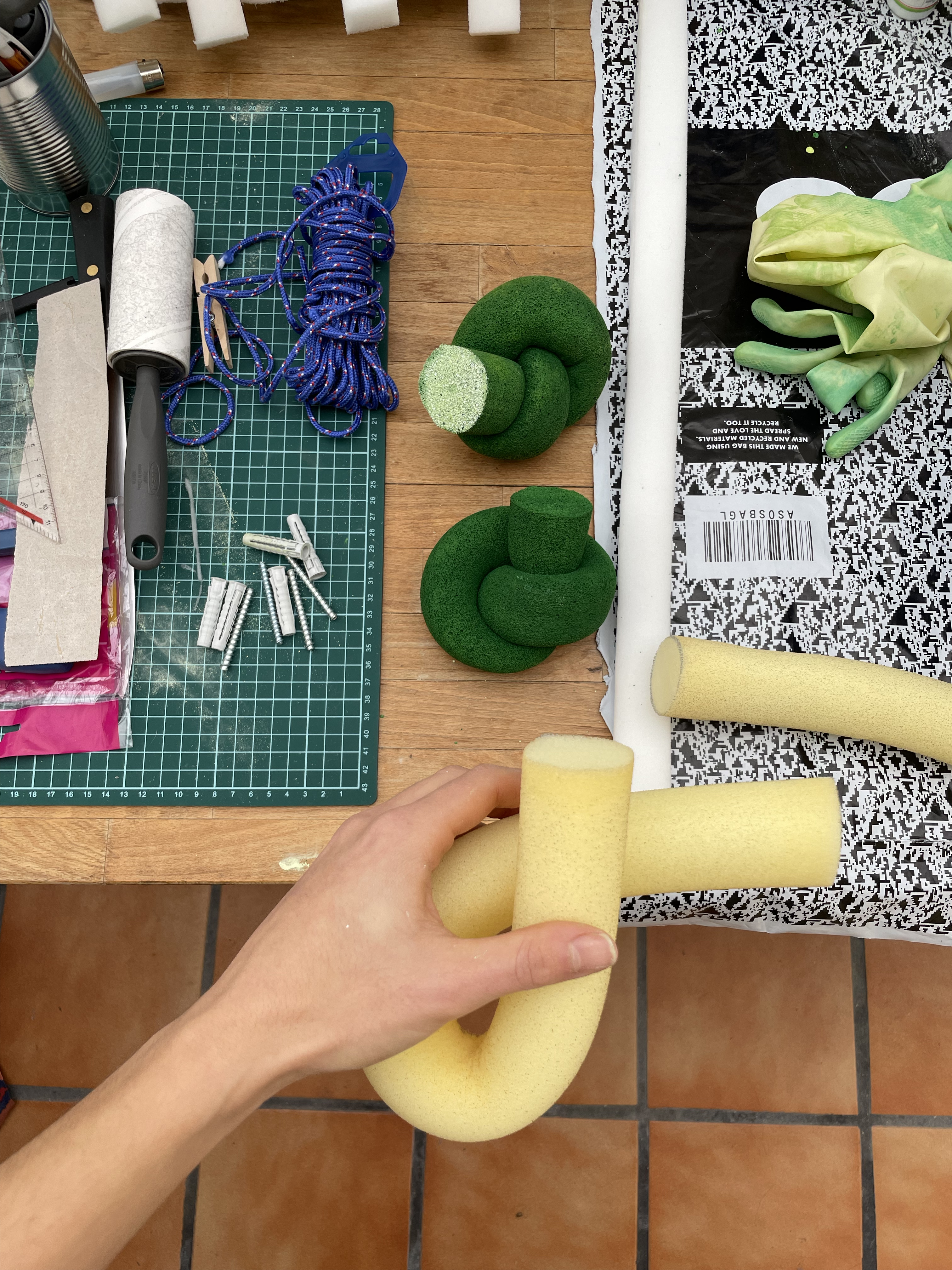 Parte de explorar las posibilidades del cilindro de espuma de poliuretano, un material accesible y en formato estándar que usualmente se utiliza en aplicaciones efímeras, poco sustentables.